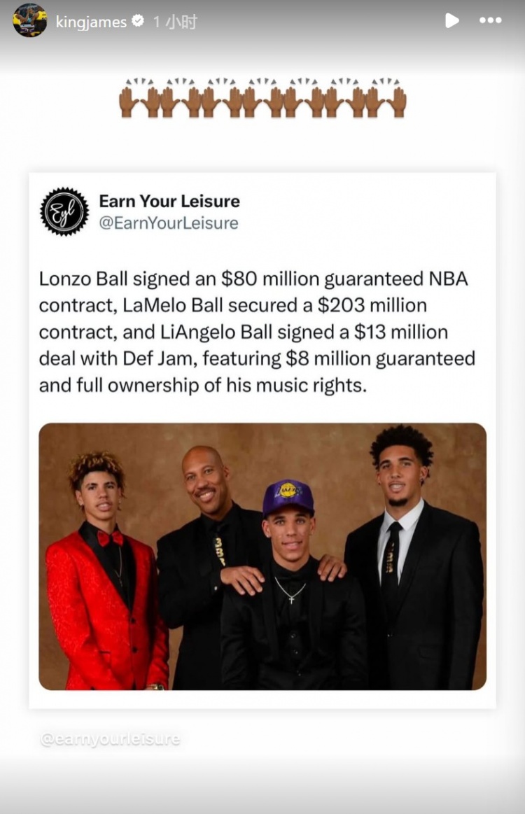 發(fā)布時(shí)間:2025年01月15日 12:51點(diǎn)擊:欄目:籃球新聞 1月15日訊 昨天,據(jù)報(bào)道稱(chēng),利安吉洛-鮑爾憑其單曲Tweaker獲1300萬(wàn)美元合同,800萬(wàn)受保障。而值得一提的是,朗佐-鮑爾之前簽下的是4年8000萬(wàn)美元的保障合同,拉梅洛-鮑爾簽下的是5年2.03億美元的合同。對(duì)此,詹姆斯轉(zhuǎn)發(fā)評(píng)論道:“ 除特別注明外,本站所有內(nèi)容均為九球直播整理排版,轉(zhuǎn)載請(qǐng)注明出處:鮑爾三兄弟都有大合同在手!詹姆斯連發(fā)7個(gè)表示祝賀 本文標(biāo)簽: nba 籃球 湖人 詹姆斯 黃蜂 拉梅洛-鮑爾 公牛