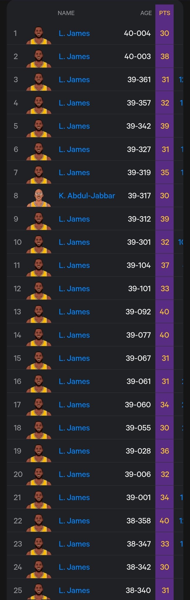 發(fā)布時(shí)間:2025年01月17日 15:58點(diǎn)擊:欄目:籃球新聞 除特別注明外,本站所有內(nèi)容均為九球直播整理排版,轉(zhuǎn)載請(qǐng)注明出處:恐怖如斯!豪門湖人隊(duì)史單場(chǎng)30+最老球員Top25:24個(gè)詹姆斯霸榜 本文標(biāo)簽: nba 籃球 西部 湖人 詹姆斯