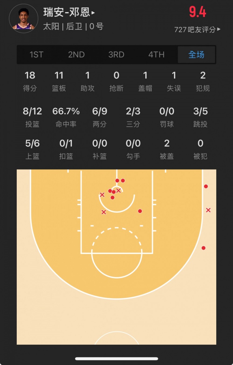 太陽28號(hào)秀 瑞安-鄧恩 登場(chǎng)29.7分鐘