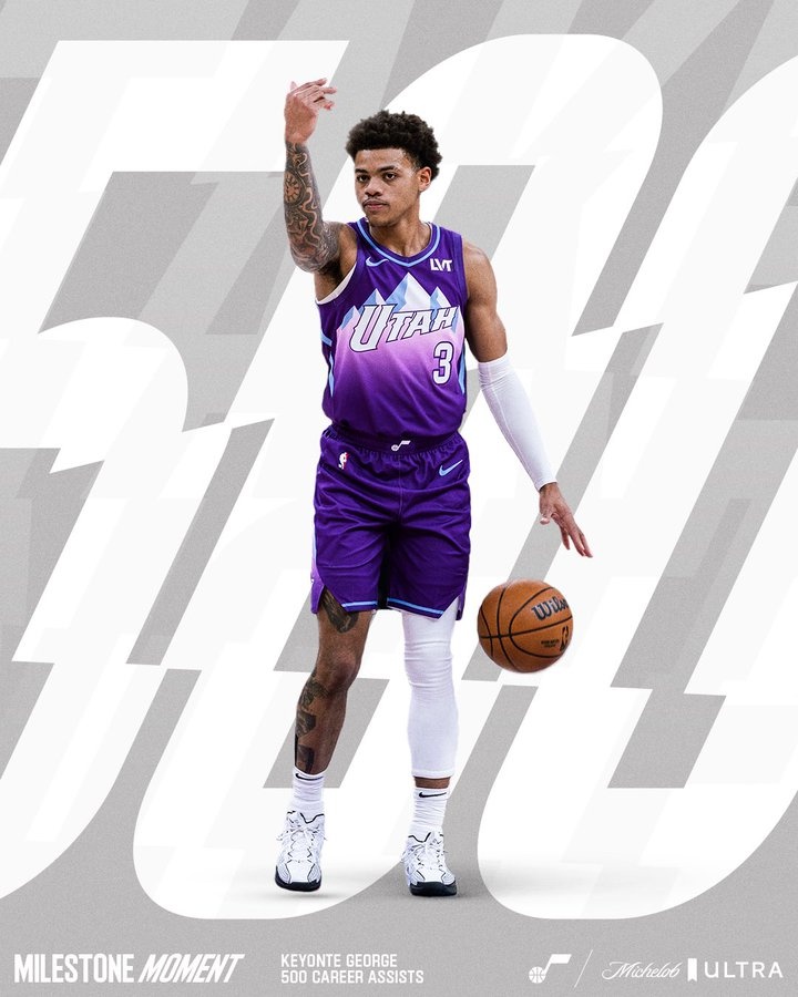 賽后,基昂特-喬治的生涯助攻數(shù)來到500次,爵士官方也曬照送上祝賀。