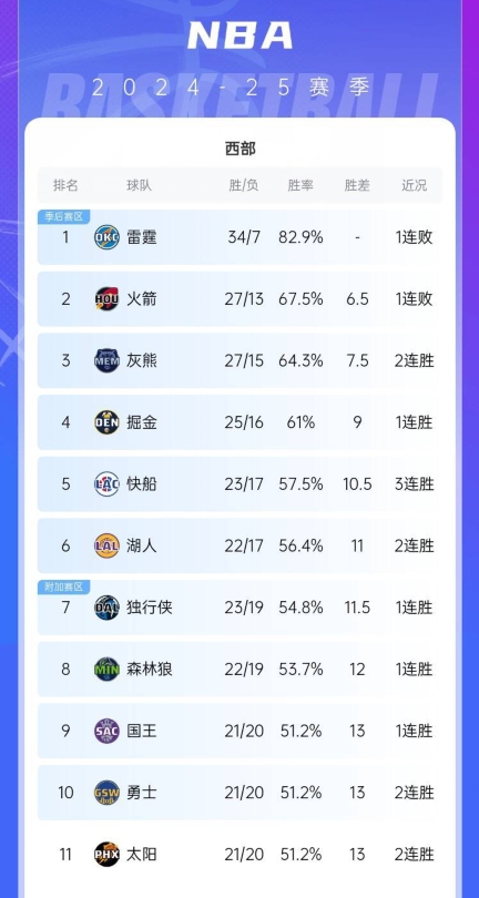 勇士取勝之后戰(zhàn)績(jī)來到21勝20負(fù),和國王、太陽持平,三隊(duì)?wèi)?zhàn)績(jī)相同時(shí)看相互交手的戰(zhàn)績(jī),國王排名第九,勇士在第十,太陽掉一位去到第11。