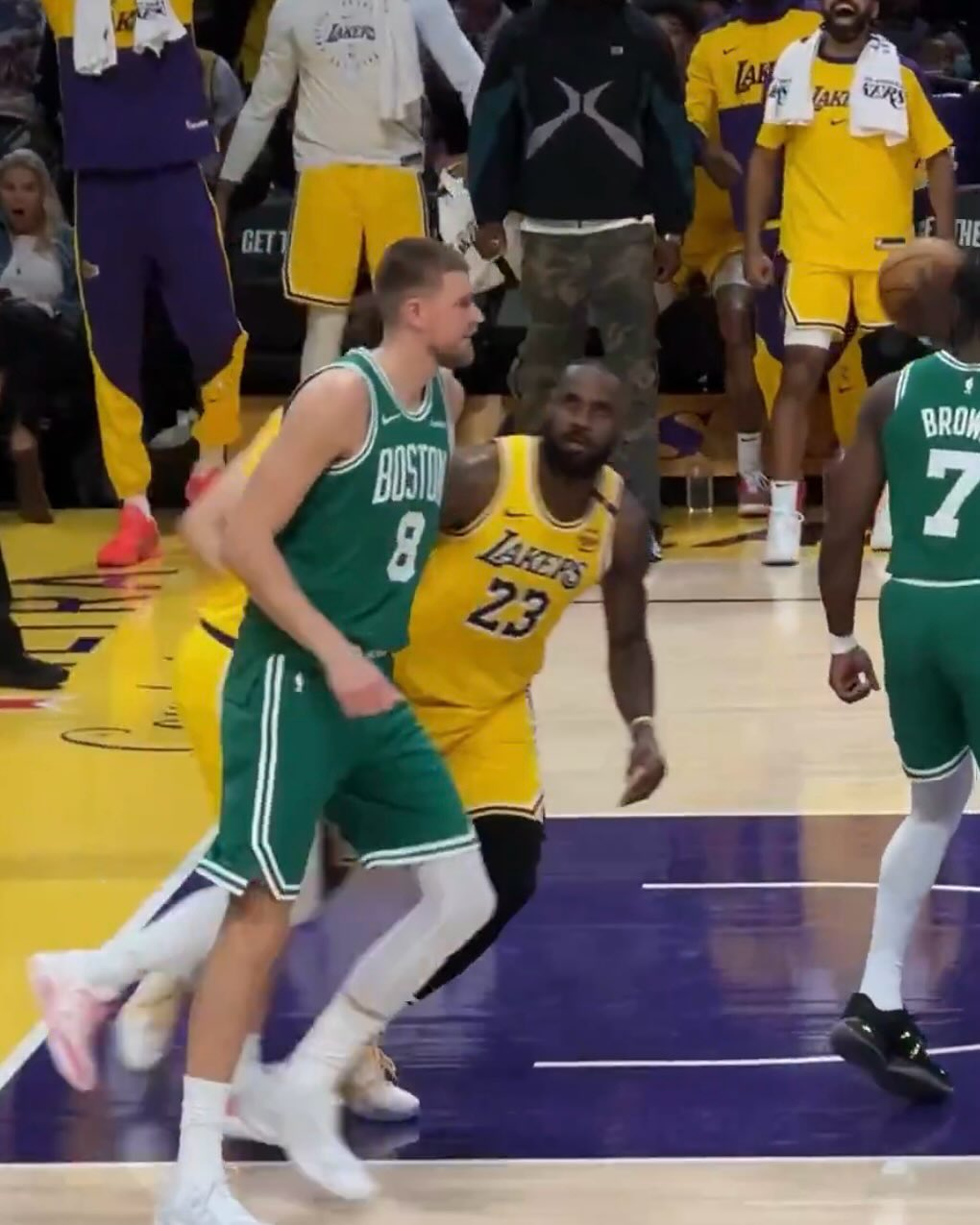 咋躲開了?詹姆斯空切單臂炸扣 落地后直勾勾地瞪著波津