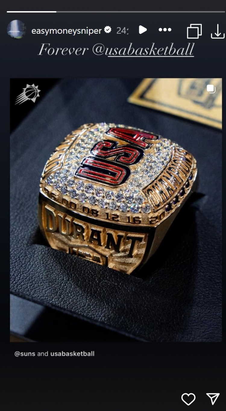 發(fā)布時(shí)間:2025年01月28日 14:51點(diǎn)擊:欄目:籃球新聞 1月28日訊 今日太陽111-1109戰(zhàn)勝快船,賽前杜蘭特和布克領(lǐng)取了美國籃協(xié)的巴黎奧運(yùn)會(huì)冠軍戒指。賽后杜蘭特更新INS曬出了戒指照片,寫道:“永遠(yuǎn)@美國籃協(xié)”相關(guān)新聞>>> 除特別注明外,本站所有內(nèi)容均為九球直播整理排版,轉(zhuǎn)載請(qǐng)注明出處:領(lǐng)取奧運(yùn)會(huì)冠軍戒指!杜蘭特INS曬戒指照:永遠(yuǎn)@美國籃協(xié) 本文標(biāo)簽: 籃球 nba 太陽 杜蘭特