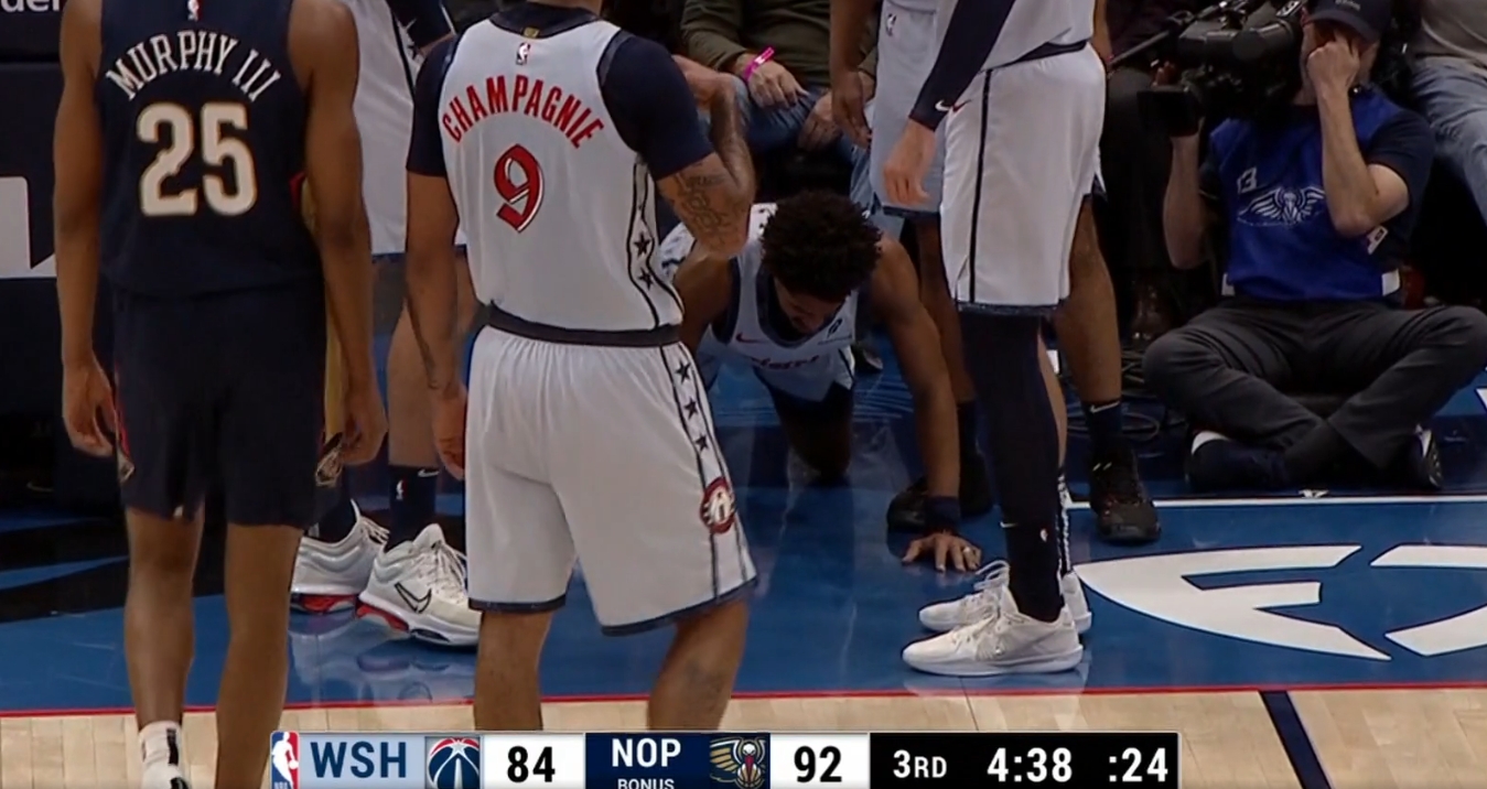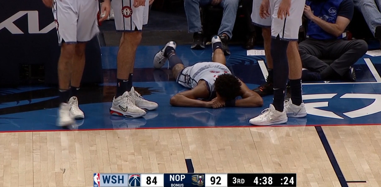 嚇人!普爾空中失衡平拍倒地 躺在地板上緩了半天