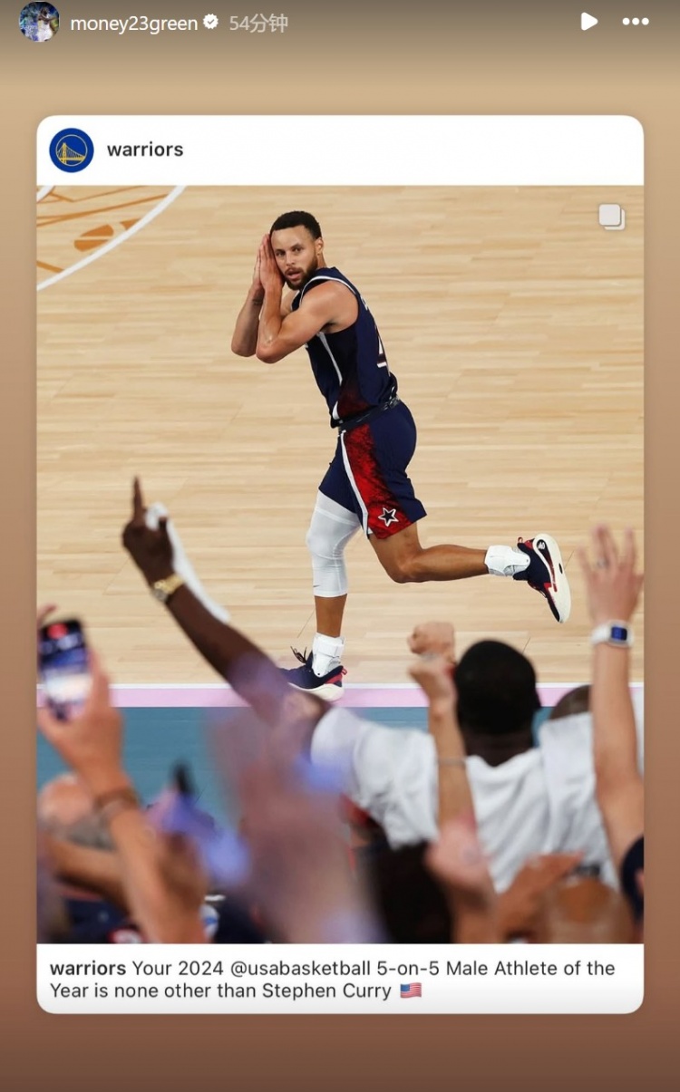1月30日訊 今日美國男籃宣布,勇士球星庫里當(dāng)選為2024年美國5人制籃球年度男運(yùn)動(dòng)員!