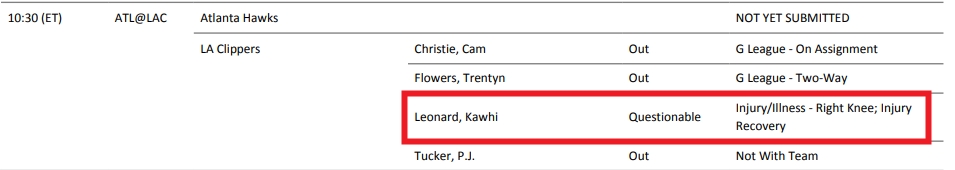 發(fā)布時(shí)間:2025年01月04日 12:50點(diǎn)擊:欄目:籃球新聞 01月04日訊 據(jù)多位名記和快船記者報(bào)道,萊昂納德將在明天快船主場(chǎng)對(duì)陣?yán)销椀谋荣愔袕?fù)出,迎來(lái)賽季首秀。快船官方最新的傷病報(bào)告顯示,萊昂納德的狀態(tài)從Out(缺席)變成了Questionable(成疑,50%)。相關(guān)新聞: 除特別注明外,本站所有內(nèi)容均為九球直播整理排版,轉(zhuǎn)載請(qǐng)注明出處:拭目以待!快船傷病報(bào)告更新:萊昂納德從缺席升級(jí)為出戰(zhàn)成疑 本文標(biāo)簽: 籃球 nba 快船 萊昂納德