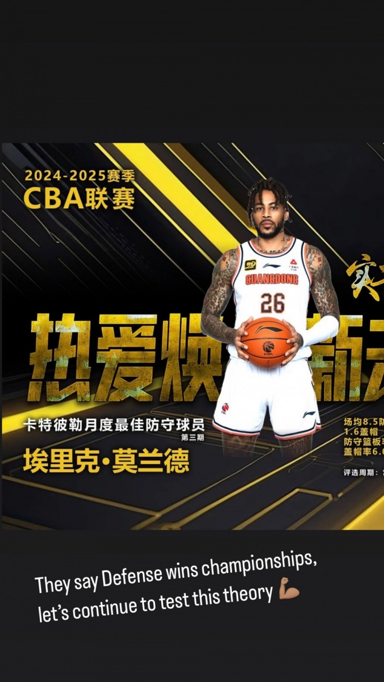 發(fā)布時(shí)間:2025年02月01日 21:58點(diǎn)擊:欄目:籃球新聞 2月1日訊 今天,廣東外援莫蘭德更新了個(gè)人社媒。莫蘭德曬出自己榮膺月度最佳防守球員的照片,并配文寫道:“他們說防守贏得總冠軍,讓我們繼續(xù)驗(yàn)證這一理論 除特別注明外,本站所有內(nèi)容均為九球直播整理排版,轉(zhuǎn)載請(qǐng)注明出處:莫蘭德:他們說防守贏得總冠軍 讓我們繼續(xù)驗(yàn)證這一理論 本文標(biāo)簽: CBA 中國籃球 籃球 廣東