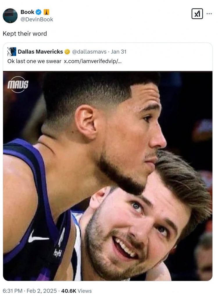 昨天,獨行俠官方在和球迷互動時還以東契奇目視嘲諷布克的照片回復。