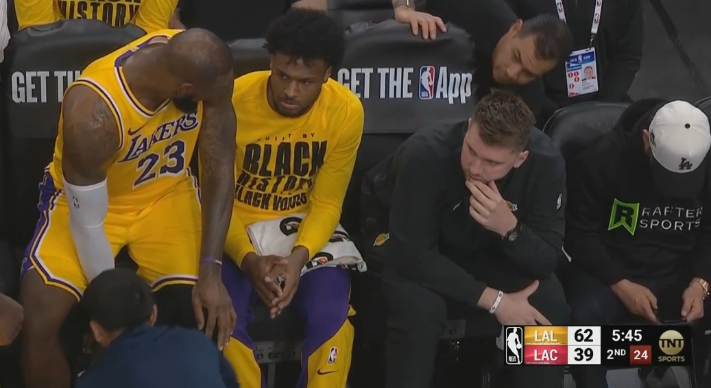 第二節(jié),布朗尼坐在詹姆斯和東契奇中間