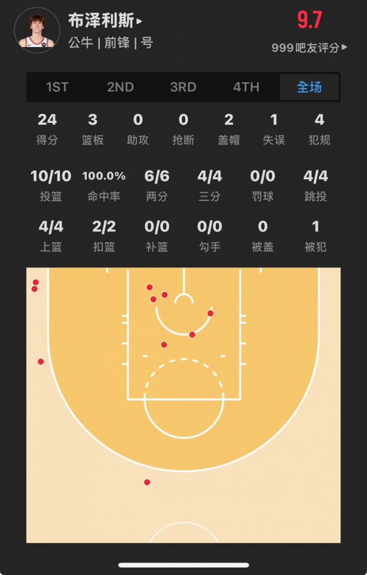 除特別注明外,本站所有內(nèi)容均為九球直播整理排版,轉(zhuǎn)載請(qǐng)注明出處:【菜鳥(niǎo)】布澤利斯10中10轟24分 韋爾17分12板 謝潑德16+7生涯新高