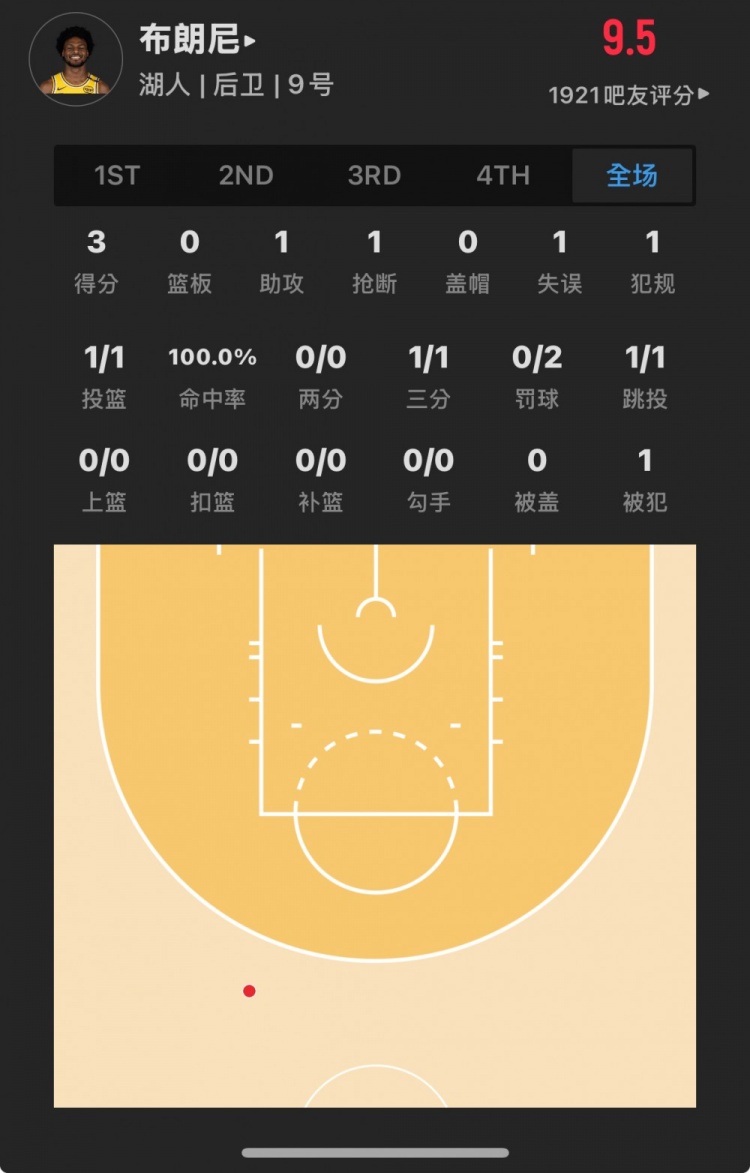 湖人55號(hào)秀 布朗尼-詹姆斯 登場(chǎng)6.0分鐘
