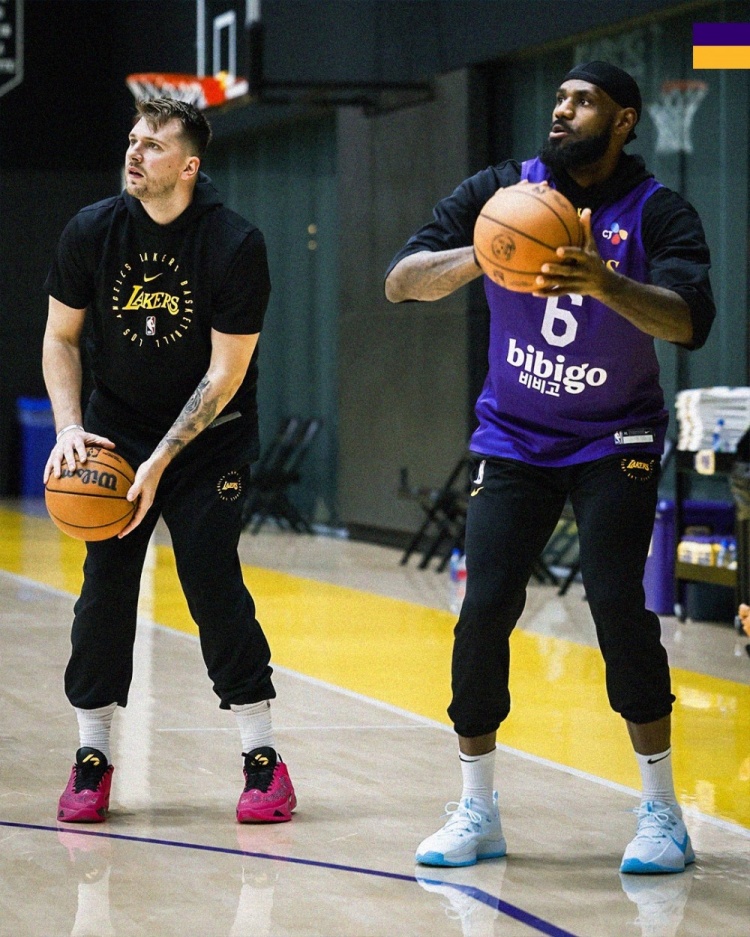 東皇&滿分組合!湖人曬東契奇與詹姆斯同框照:首次亮相