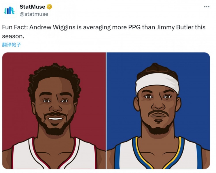 - 美媒:有趣的是 維金斯本賽季場均17.6分比巴特勒高