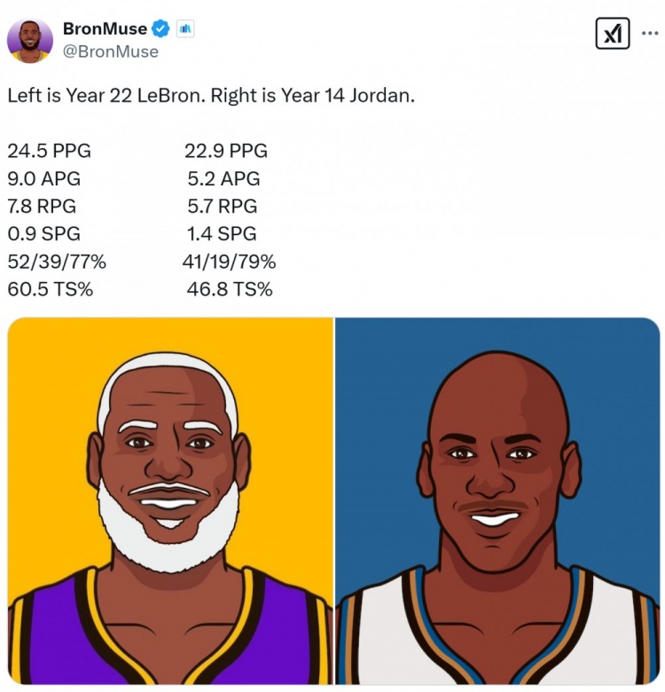 發(fā)布時(shí)間:2025年02月08日 16:49點(diǎn)擊:欄目:籃球新聞 詹姆斯生涯第22季場(chǎng)均24.5分7.8籃板9助攻0.9搶斷,三項(xiàng)命中率52/39/77%,真實(shí)命中率60.5%;喬丹生涯第14季場(chǎng)均22.9分5.7籃板5.2助攻1.4搶斷,三項(xiàng)命中率41/19/79%,真實(shí)命中率46.8%。 除特別注明外,本站所有內(nèi)容均為九球直播整理排版,轉(zhuǎn)載請(qǐng)注明出處:美媒:第22季詹姆斯24.5分&三分39% 第14季喬丹22.9分&19% 本文標(biāo)簽: 籃球 nba 湖人 詹姆斯 喬丹