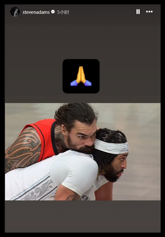 與濃眉在其受傷比賽上交手的火箭中鋒亞當(dāng)斯更新社媒,為濃眉祈福。他發(fā)布了一張兩人在該場(chǎng)比賽的同框照,并配了一個(gè)祈禱的表情