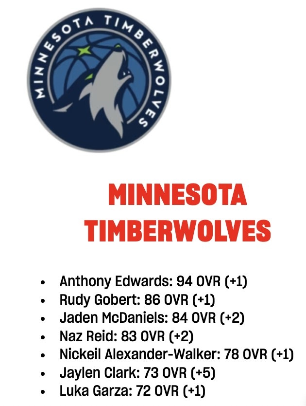 森林狼2K能力值更新:愛德華茲+1至94 戈貝爾+1至86 全隊7人漲分