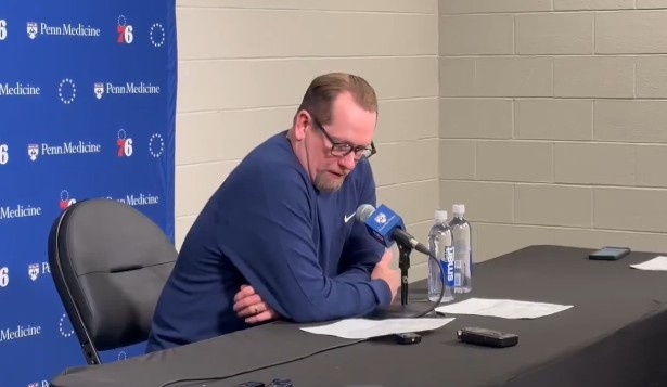 發(fā)布時(shí)間:2025年02月25日 15:53點(diǎn)擊:欄目:籃球新聞 2月25日訊 今日NBA常規(guī)賽,76人主場(chǎng)110比142不敵公牛,遭遇8連敗。賽后76人主帥納斯接受了媒體的采訪。在賽后采訪中,納斯情緒不高并一直搖頭,多次強(qiáng)調(diào)球隊(duì)需要更加職業(yè)。談到球隊(duì)今天的表現(xiàn),納斯表示:“非常、非常令人失望!” 除特別注明外,本站所有內(nèi)容均為九球直播整理排版,轉(zhuǎn)載請(qǐng)注明出處:精氣神沒(méi)了!納斯賽后采訪一直搖頭 并多次強(qiáng)調(diào)球隊(duì)需要更加職業(yè) 本文標(biāo)簽: nba 籃球 東部 76人