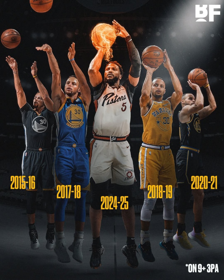 發(fā)布時間:2025年03月01日 07:54點(diǎn)擊:欄目:籃球新聞 美媒Basketball Forever曬出數(shù)據(jù):歷史上單賽季場均至少9次三分出手且三分命中率42%+的球員有: 除特別注明外,本站所有內(nèi)容均為九球直播整理排版,轉(zhuǎn)載請注明出處:賽季場均9+三分出手且命中率42%+榜:比斯利混入一群庫里當(dāng)中 本文標(biāo)簽: 籃球 nba 勇士 活塞 庫里