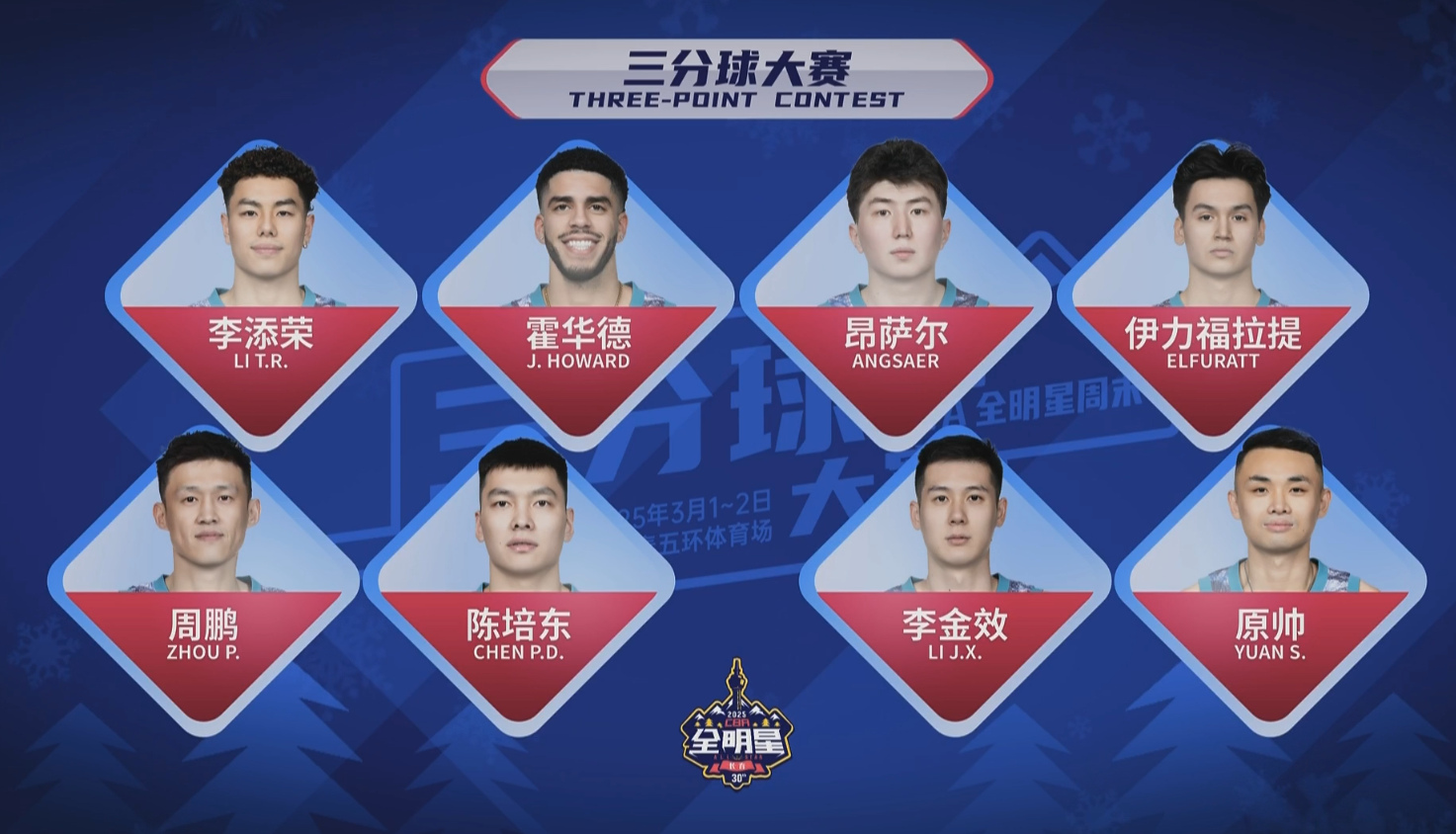 03月01日訊 CBA全明星三分大賽預(yù)賽,共8名球員參賽決出3人晉級(jí)。