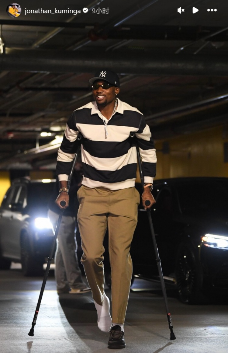 庫(kù)明加在INS曬出了自己拄著拐杖的照片。