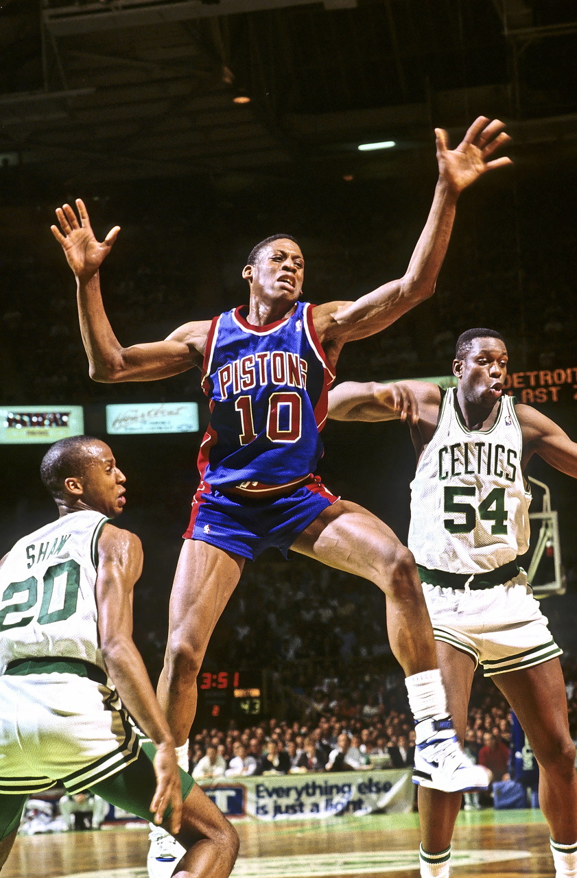 1992年3月4日,活塞隊110-107戰(zhàn)勝步行者。比賽中活塞悍將羅德曼瘋狂搶下34個籃板,創(chuàng)了個人生涯紀錄,同時也創(chuàng)下了球隊的紀錄。