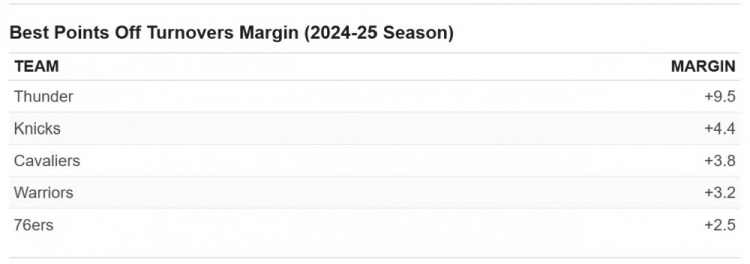 14、雷霆不僅在防守端擅長制造對手失誤,他們在進攻端的失誤控制也是聯(lián)盟最佳。這種雙重優(yōu)勢意味著雷霆每場比賽比對手少失誤5.9次,這將打破1987-88賽季掘金創(chuàng)造的5.1次紀錄。本賽季,只有一支球隊的失誤差能達到雷霆的三分之一。