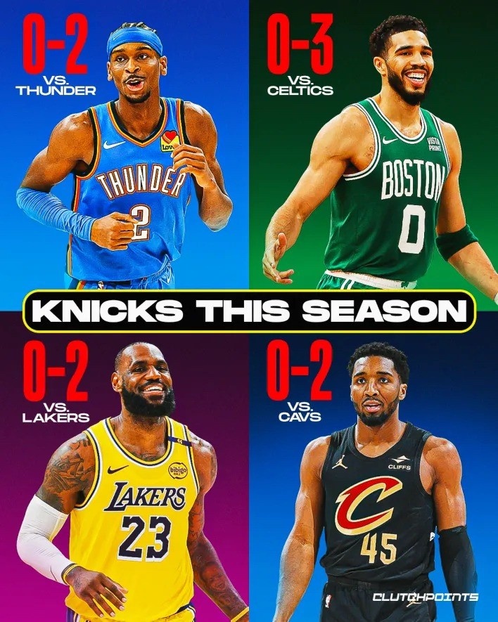 欺軟怕硬?尼克斯本季對聯(lián)盟前四騎士/雷霆/綠軍/湖人共0勝9負(fù)