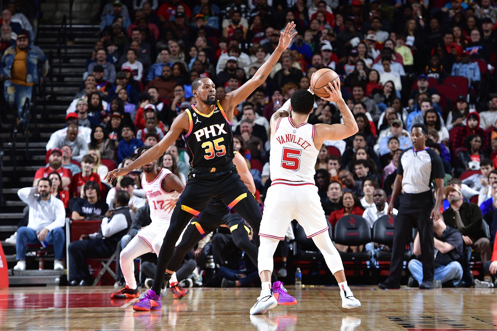 火箭是太陽完美的交易伙伴,主要有兩個(gè)原因。首先,杜蘭特完美填補(bǔ)了火箭最大的短板。憑借年輕的核心陣容和強(qiáng)悍的防守,火箭正在西部崛起。但他們?nèi)狈σ晃荒軌驇ьI(lǐng)球隊(duì)爭冠的頂級(jí)得分手,根據(jù)Cleaning the Glass網(wǎng)站的數(shù)據(jù),本賽季火箭的半場進(jìn)攻效率僅排名聯(lián)盟第25位。即使已經(jīng)36歲,杜蘭特也能在這一領(lǐng)域帶來顯著提升,他的使用率和真實(shí)命中率都遠(yuǎn)高于火箭輪換陣容中的任何一名球員。其次,火箭控制著太陽2025年、2027年和2029年的首輪簽,這些首輪簽最初是太陽在交易杜蘭特時(shí)送給籃網(wǎng)的。重新獲得部分或全部首輪簽將使太陽能為杜蘭特時(shí)代畫上圓滿句號(hào),同時(shí)也讓球隊(duì)能夠在未來自由操作,而不必?fù)?dān)心失去樂透簽的風(fēng)險(xiǎn)。