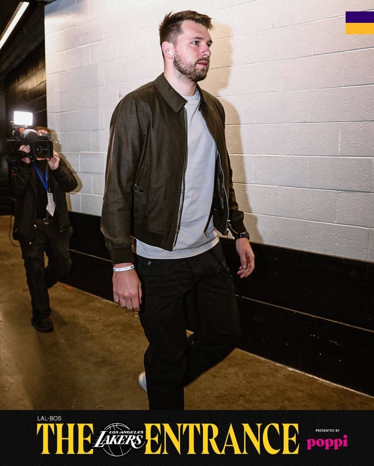 湖人眾將入場穿搭:東契奇低調(diào)如常 文總夾克套衛(wèi)衣 老詹帽子吸睛