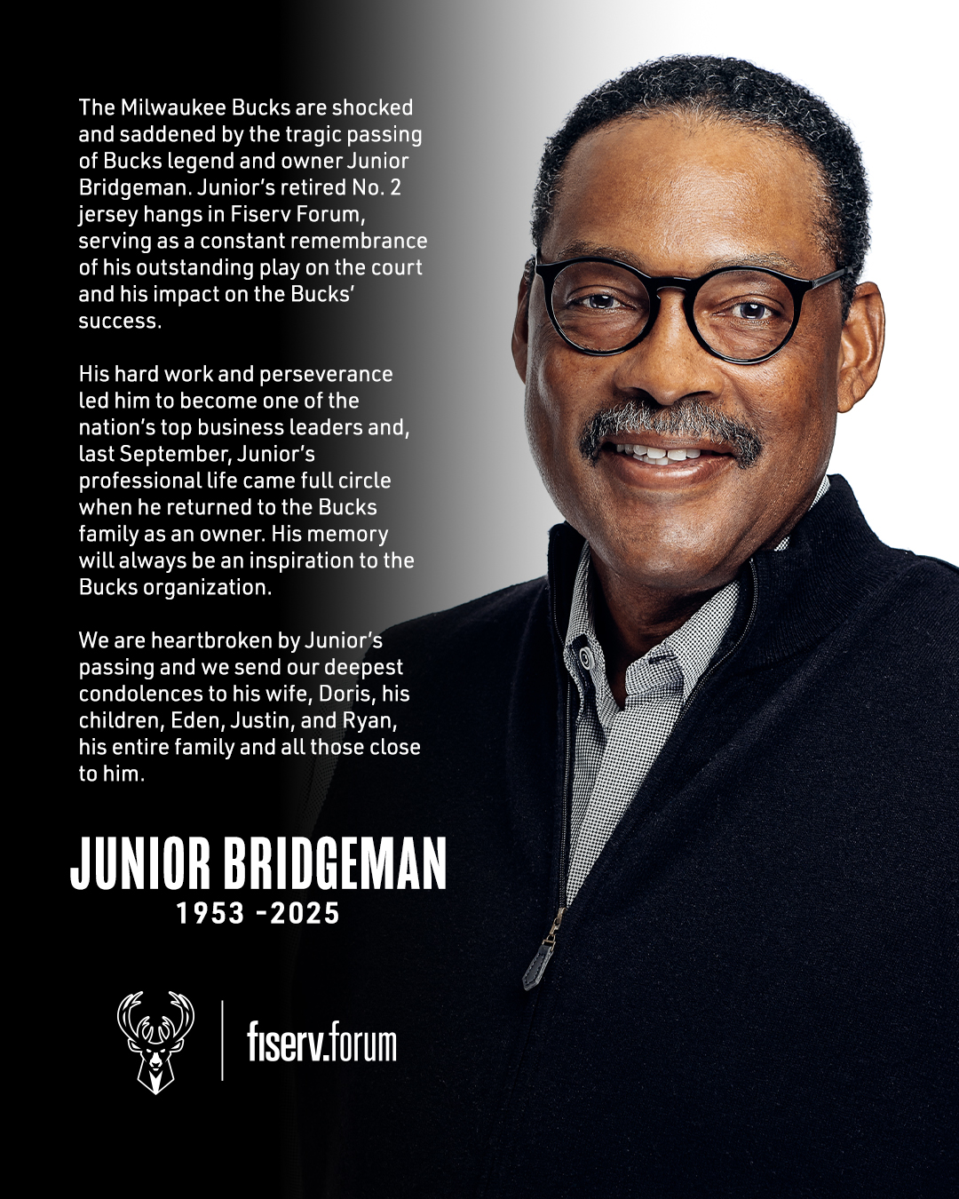 03月13日訊 雄鹿官方此前宣布,球隊名宿,小老板朱尼奧-布里奇曼因病去世,享年73歲。