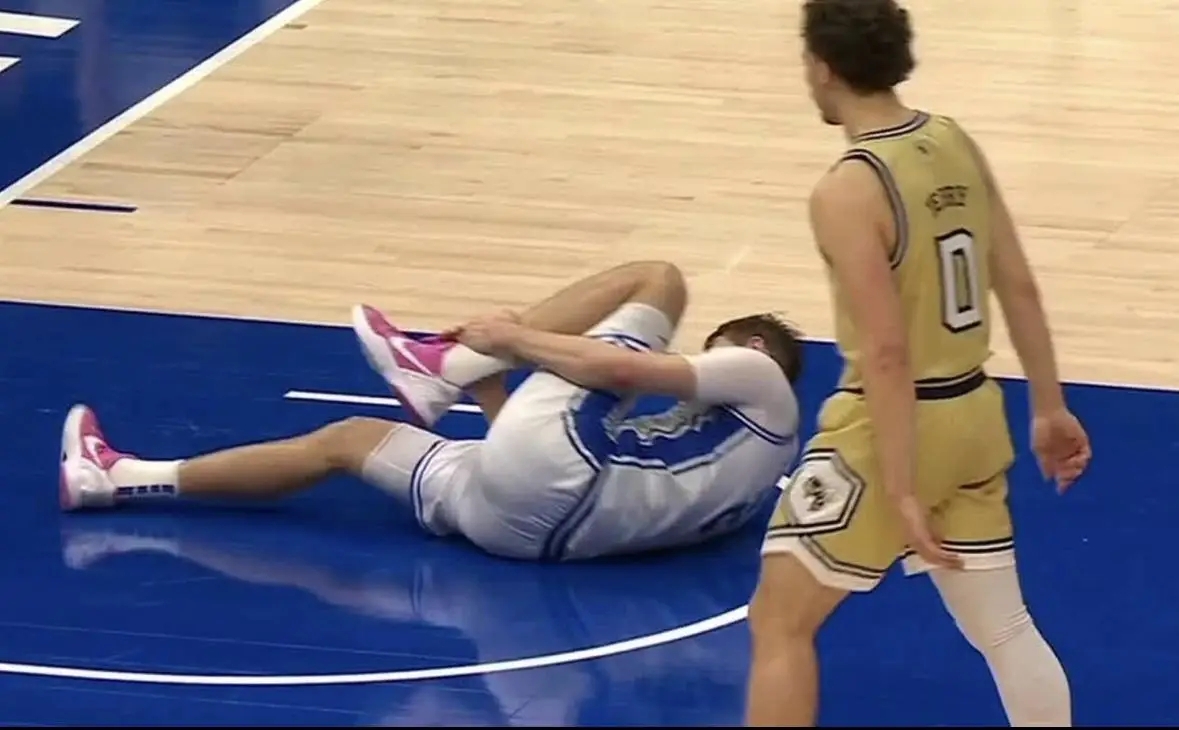 比賽上半場(chǎng)還剩下2分48秒左右,杜克大學(xué)球星&五星新人&25年NBA狀元大熱弗拉格在一次搶板落地后左腳不慎踩到喬治亞理工學(xué)院球員達(dá)里恩-薩頓的腳部,隨后痛苦倒地。他一度試圖自行起身,但最終在隊(duì)醫(yī)和隊(duì)友攙扶下離場(chǎng),左腳未敢承重。