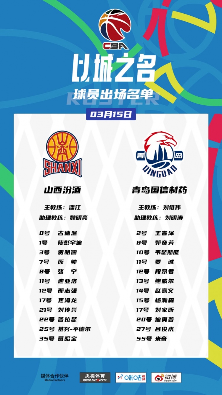 發(fā)布時間:2025年03月15日 19:59點擊:欄目:籃球新聞 3月15日訊 今晚7點35分,青島男籃將在客場挑戰(zhàn)山西男籃。本場比賽的大名單已經(jīng)出爐,上輪比賽缺陣的楊瀚森在列。具體名單如下:青島隊:王睿澤、郭奇芳、韋瑟斯龐、賈誠、段昂君、鮑威爾、趙嘉義、楊瀚森、劉家昕、迪奧普、呂俊虎、米奇。山西隊:古德溫、陳彭宇迪、賈明儒、原帥、張寧、迪亞洛、邢志強、焦海龍、劉傳興、普拉瑟、基努-平德爾、葛昭寶。 除特別注明外,本站所有內容均為九球直播整理排版,轉載請注明出處:青島VS山西大名單:楊瀚森復出 張寧原帥在列 山西新援平德爾首秀 本文標簽: 籃球 CBA 中國籃球 楊瀚森 青島 山西