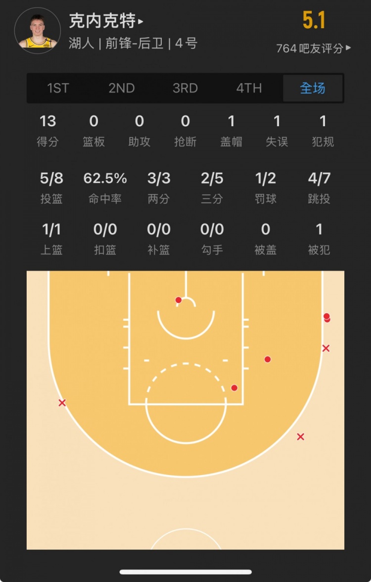湖人17號(hào)秀 道爾頓-克內(nèi)克特 登場(chǎng)16.0分鐘