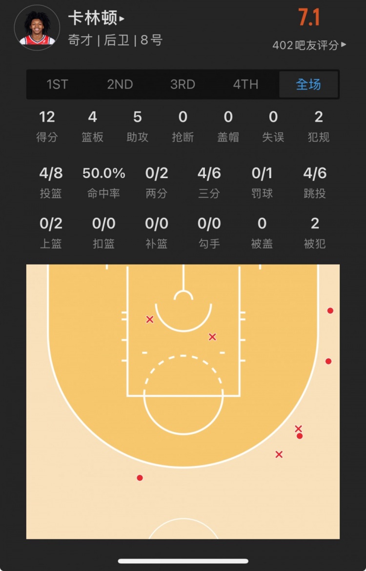 奇才14號(hào)秀 卡爾頓-卡林頓 登場(chǎng)34.1分鐘