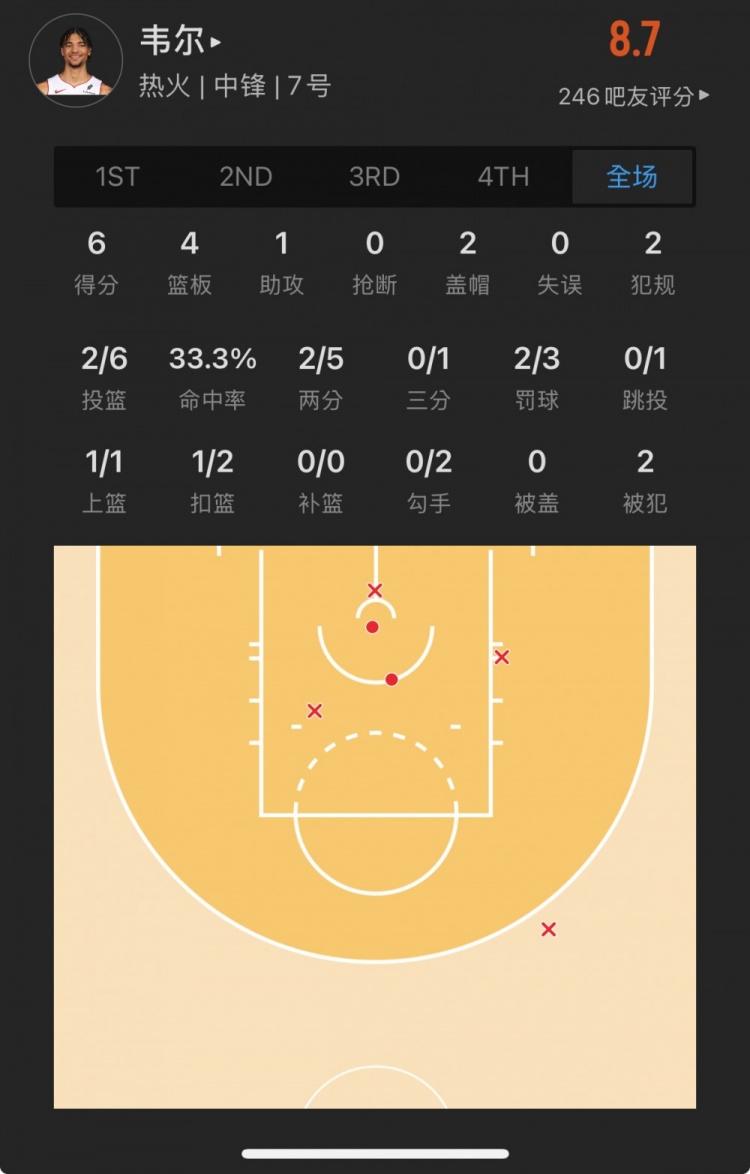熱火15號(hào)秀 克雷爾-韋爾 登場(chǎng)18.2分鐘