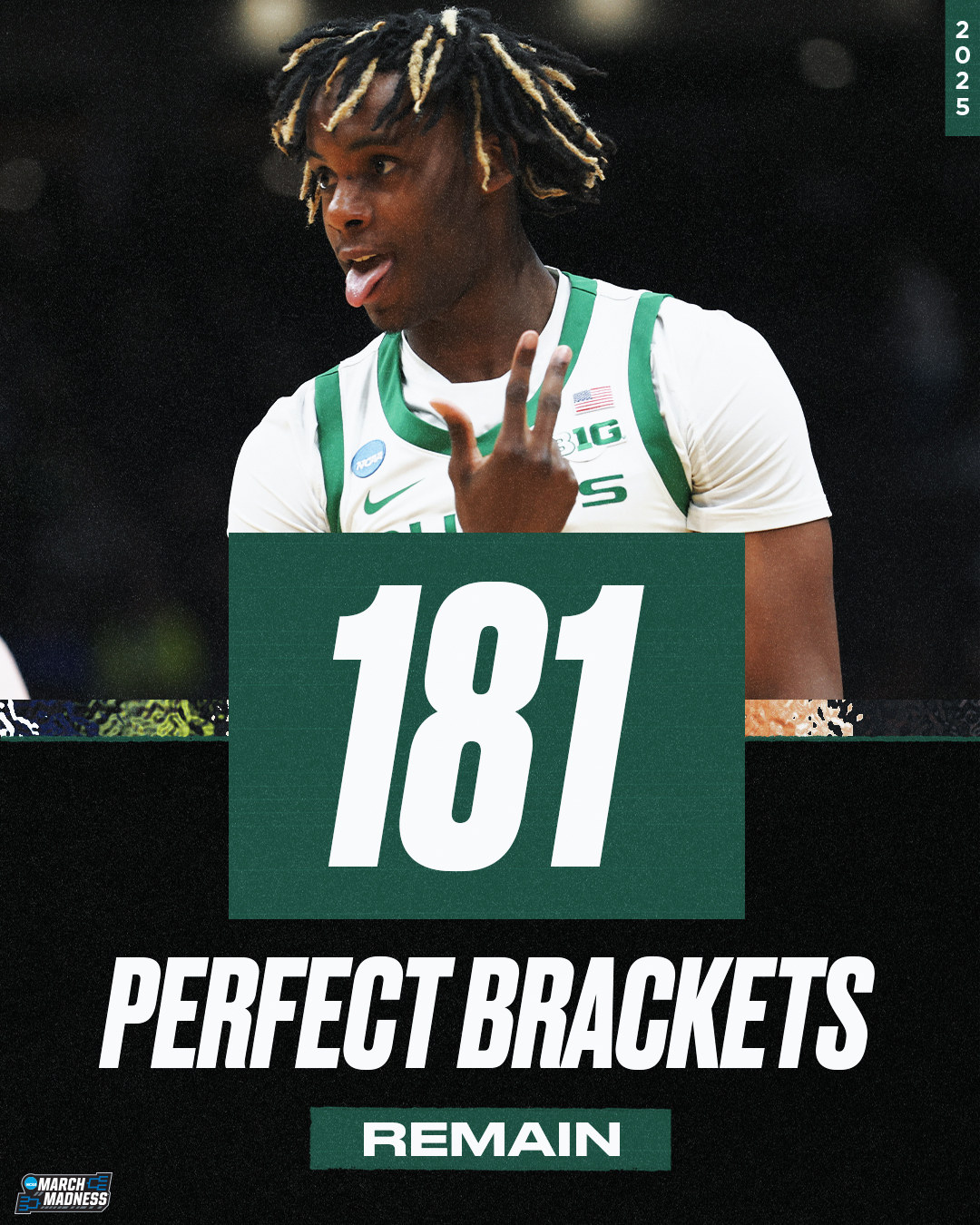 03月22日訊 NCAA瘋?cè)纵啈?zhàn)罷,32支球隊晉級,官方表示完美預(yù)測表只剩181份還存活著。
