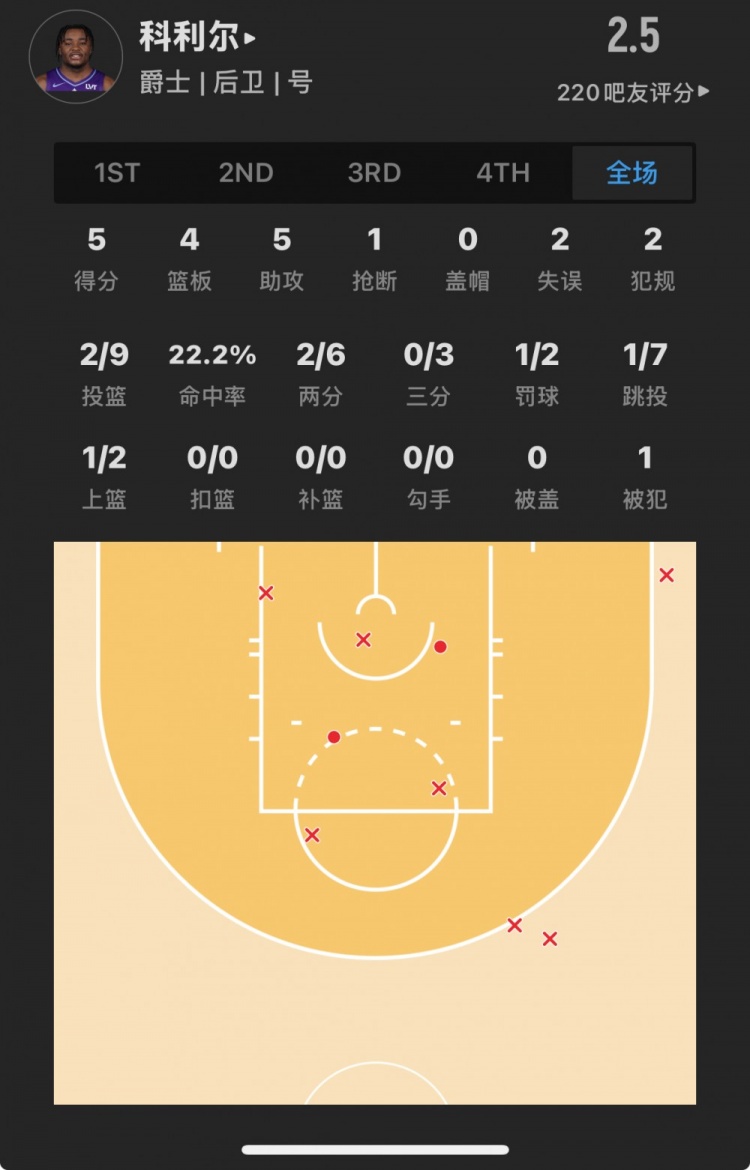 爵士29號秀 以賽亞-科利爾 登場30.5分鐘