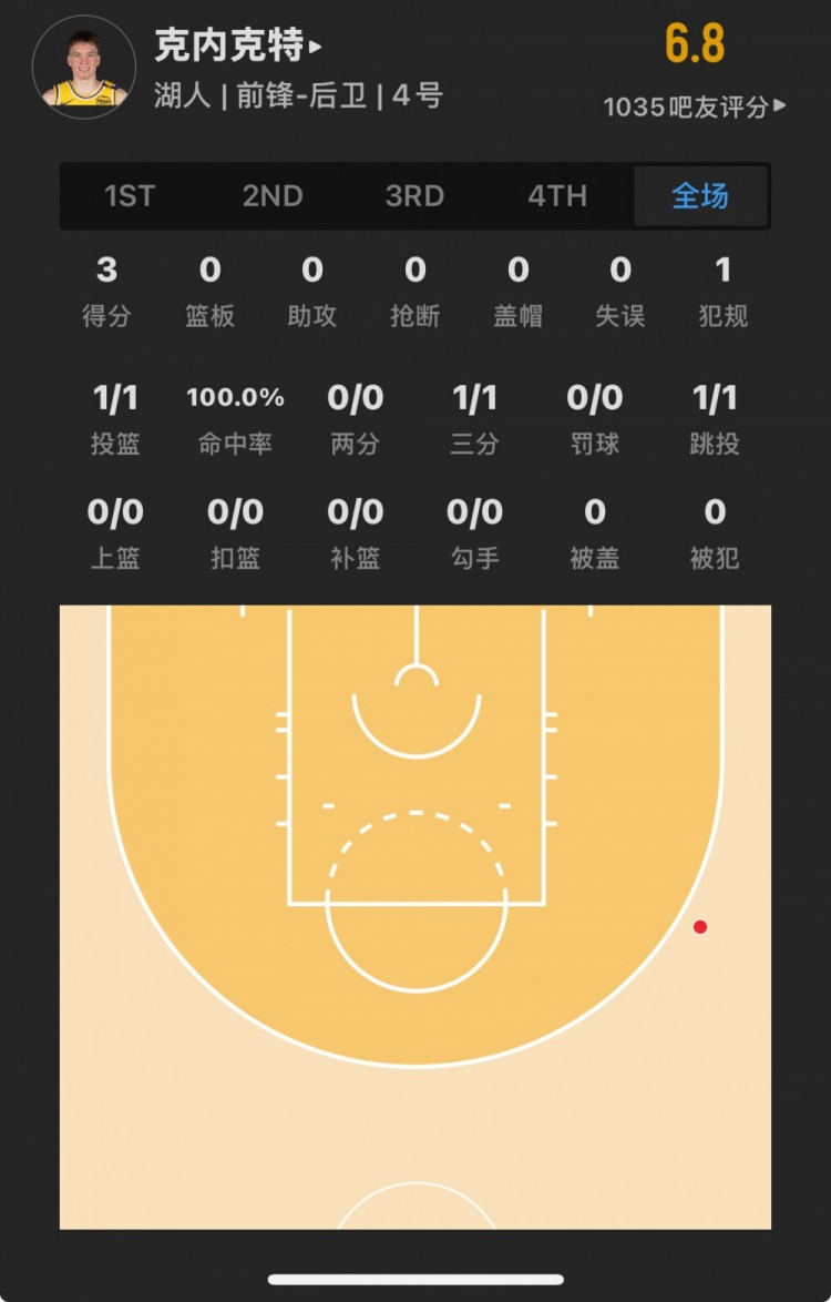 湖人17號秀 道爾頓-克內(nèi)克特 登場4.6分鐘