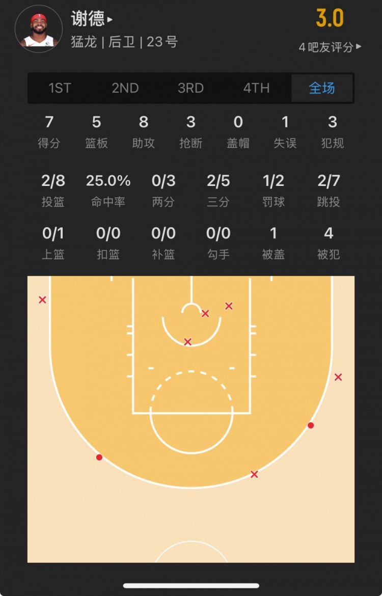 猛龍45號秀 賈馬爾-謝德 登場24.4分鐘