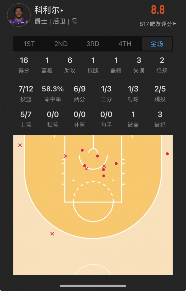 爵士29號秀 以賽亞-科利爾 登場30.6分鐘