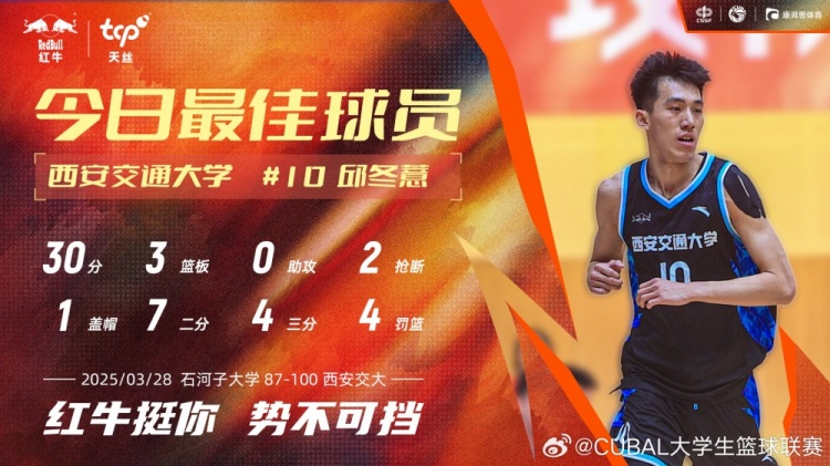 除特別注明外,本站所有內(nèi)容均為九球直播整理排版,轉(zhuǎn)載請注明出處:30分3籃板2搶斷!CUBAL今日最佳球員:西安交大10號邱冬薏!
