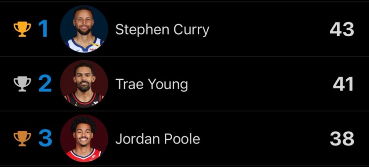 發(fā)布時(shí)間:2025年03月29日 12:32點(diǎn)擊:欄目:籃球新聞 注:30英尺約等于9.14米 除特別注明外,本站所有內(nèi)容均為九球直播整理排版,轉(zhuǎn)載請(qǐng)注明出處:本賽季命中30+英尺投籃球員前3名:庫(kù)里43記 特雷-楊41 普爾38 本文標(biāo)簽: 籃球 nba 勇士 奇才 老鷹 庫(kù)里 特雷-楊