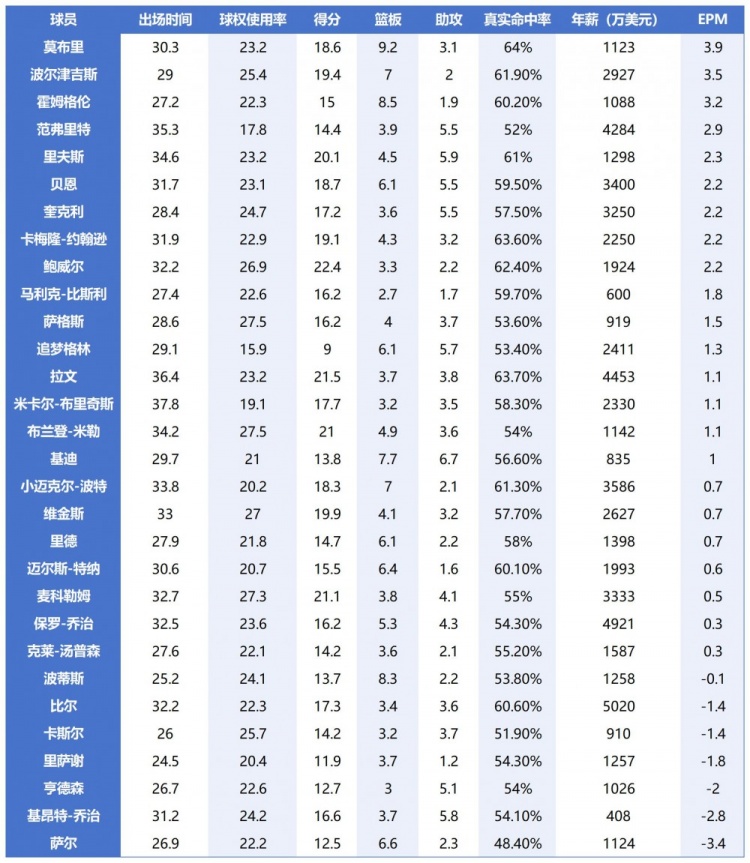 論綜合影響力,具備超強(qiáng)防守影響力的高大內(nèi)線優(yōu)勢巨大。30位三當(dāng)家EPM排行榜,莫布里、波爾津吉斯和霍姆格倫分列1-3位,他們所效力的球隊均是本賽季勝率前3位的強(qiáng)隊??紤]到他們3人攻防兼?zhèn)?,這個結(jié)果不讓人意外。