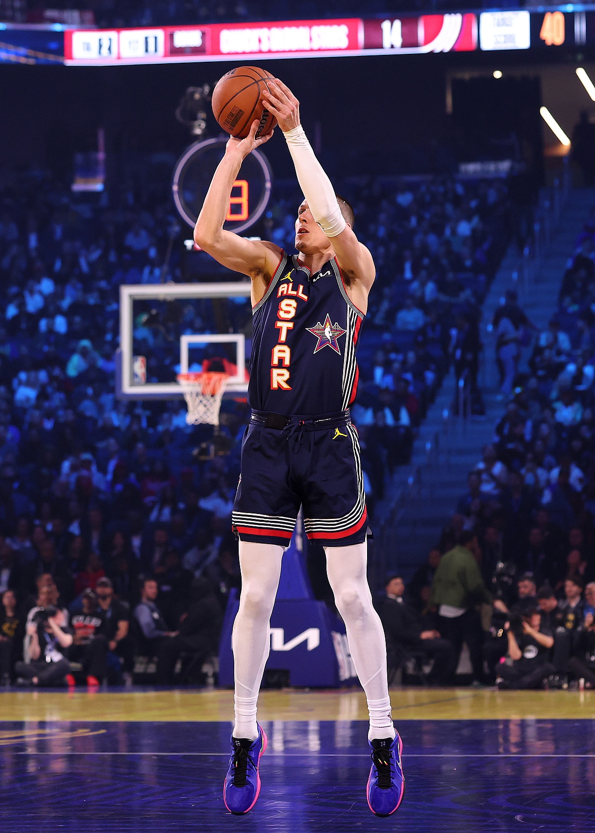 克拉姆:我同意邦當(dāng)?shù)挠^點(diǎn),今年沒(méi)有人可能打破這一趨勢(shì),因?yàn)樵摢?jiǎng)項(xiàng)的熱門候選人——普理查德、馬利克-比斯利和被低估的泰-杰羅姆——都不太可能在任何時(shí)候成為全明星。所以我將作弊并選擇拉塞爾-威斯布魯克,作為掘金隊(duì)中一位高效的第六人,他有充分的理由獲得投票者的考慮,而且他可能會(huì)在他生涯的最后一個(gè)賽季中獲得榮譽(yù)全明星的席位,就像德克-諾維茨基和德維恩-韋德一樣。