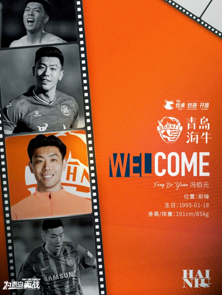 自即日起,馮伯元自由身加盟青島海牛足球俱樂部,他與俱樂部簽署1+1合同。歡迎他的到來。