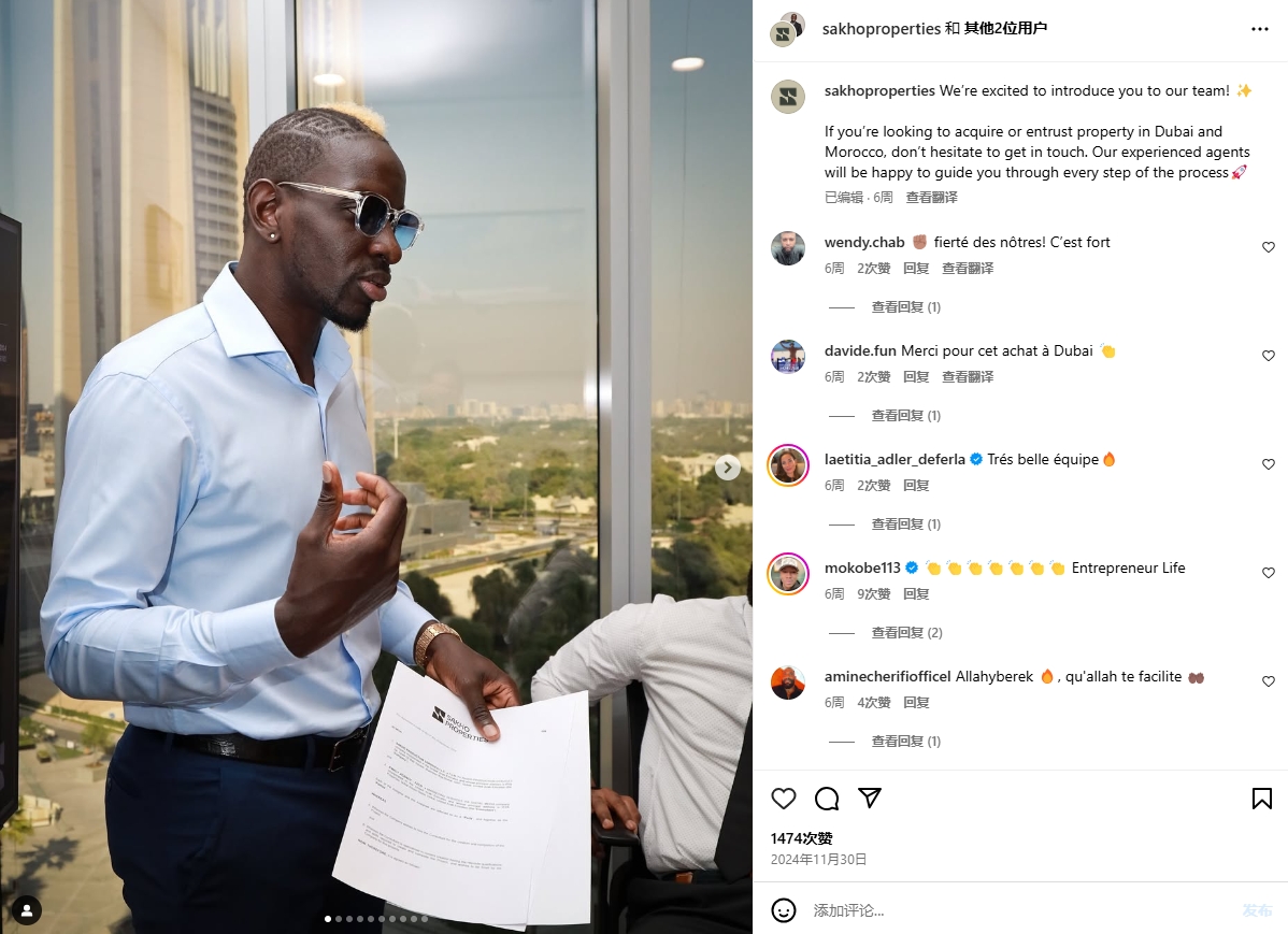 34歲的薩科在離開(kāi)法國(guó)的蒙彼利埃俱樂(lè)部之后,開(kāi)始了自己的企業(yè)家生涯。這位后衛(wèi)在2013至2017年間效力利物浦,在去年11月他在迪拜開(kāi)設(shè)了自己的房地產(chǎn)公司Sakho&Co。據(jù)了解,薩科的公司還從事咨詢(xún)和視頻制作的業(yè)務(wù)。