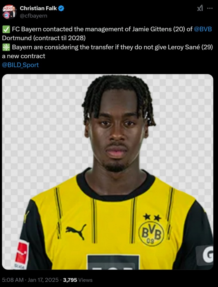 1月17日訊 據(jù)《體育圖片報(bào)》主編法爾克報(bào)道,拜仁已經(jīng)聯(lián)系了多特20歲前鋒吉滕斯的經(jīng)紀(jì)公司。