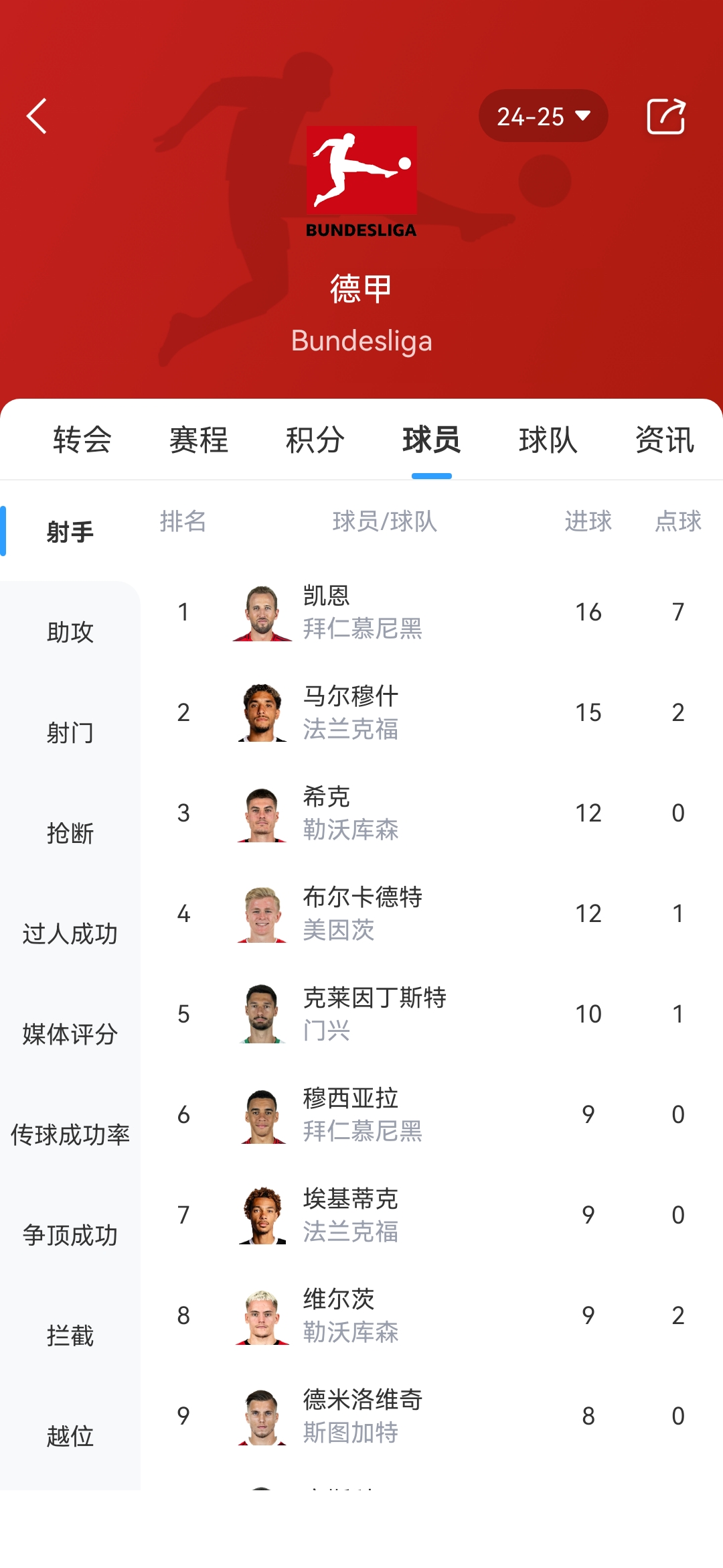 在目前的德甲射手榜上,凱恩依然以16球位列榜首,但只領(lǐng)先身后的馬爾穆什1球。