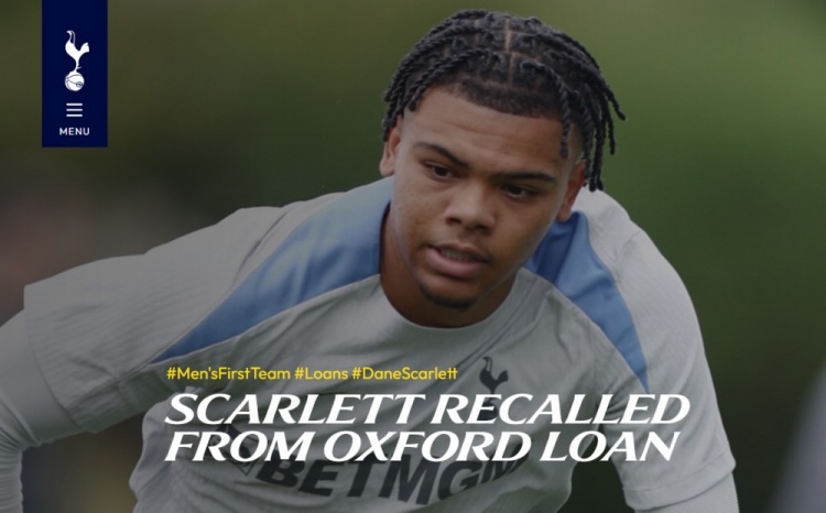 1月20日訊 熱刺官方宣布,從英冠俱樂部牛津聯(lián)召回了20歲前鋒斯卡列特。