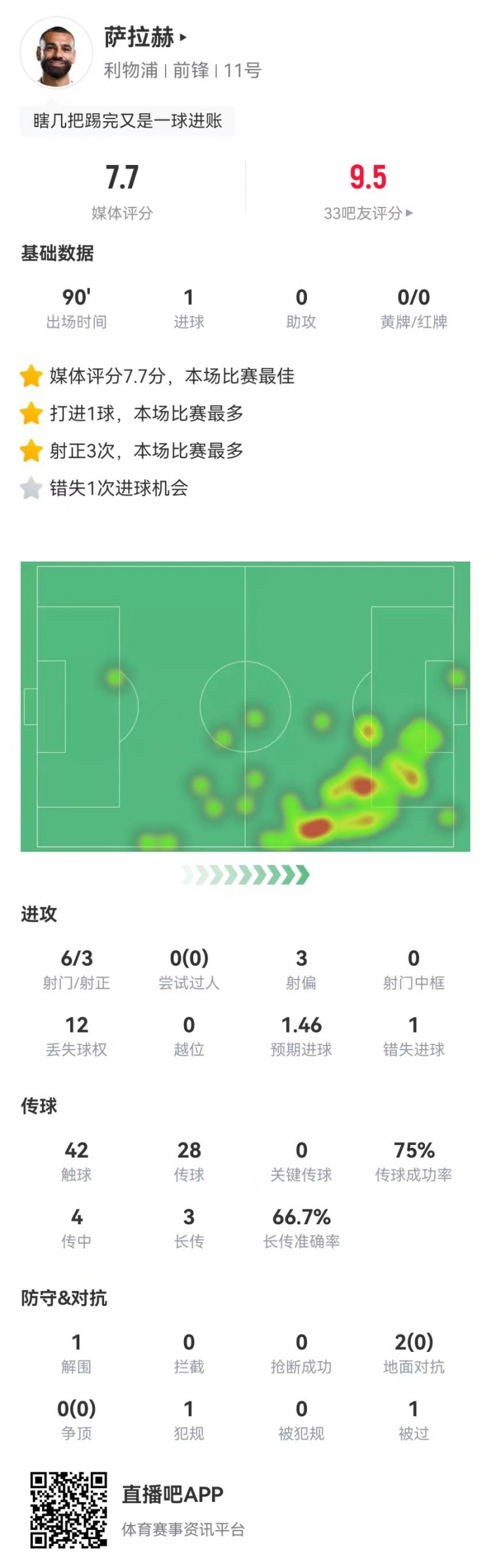 發(fā)布時間:2025年01月22日 06:50點擊:欄目:足球新聞 1月22日訊 利物浦在本輪歐冠2-1擊敗里爾,薩拉赫本場數(shù)據(jù)如下:出場90分鐘1球預期進球1.46球6射門、3射正1錯失重大機會42觸球28傳球、21成功,成功率75%4傳中、0成功3長傳、2成功12丟失球權1犯規(guī)1解圍1被過獲評7.7分全場最高 除特別注明外,本站所有內(nèi)容均為九球直播整理排版,轉(zhuǎn)載請注明出處:薩拉赫本場6射3正進1球+1失良機 4傳中0成功 7.7分全場最高 本文標簽: 足球 英超 利物浦 歐冠 薩拉赫
